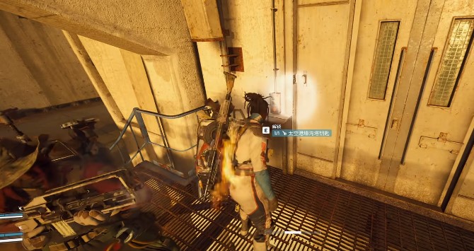 成功获得钥匙后,玩家的首要目的地就是位于阿塞拉太空港区域的北战壕塔楼(需要特别说明的是,该区域实际上包含南北两座战壕塔楼)。当您顺利抵达这座建筑的顶层平台时,请留意左手边那道醒目的蓝色阶梯,沿着阶梯向上行进,便会发现一道严密锁闭的安全门——这正是需要运用太空港战壕塔楼钥匙才能开启的关键地点。