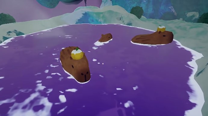 在《Peak》游戏里探索平顶山生物群系的时候,你会发现这里又热又危险,到处都是风沙,想找个凉快地方可不容易。不过别灰心,运气好的话,你还能遇见一些超可爱的小动物——比如水豚,跟它们一起放松一下!