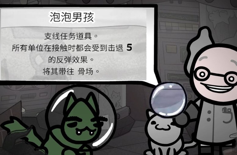 你见过能让全场都变成弹力球的装备吗?”泡泡男孩”就是这么一个奇葩玩意。它是颈部饰品,属于支线任务道具。戴上它之后,只要发生物理接触,不管是你的猫、敌人还是Boss,统统都会被弹飞5格。
