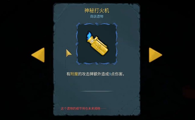 神秘打火机是个挺好懂的遗物,它就喜欢那些爱用附魔攻击的牌组。只要你打出附魔攻击牌,它就乖乖给你加伤害。