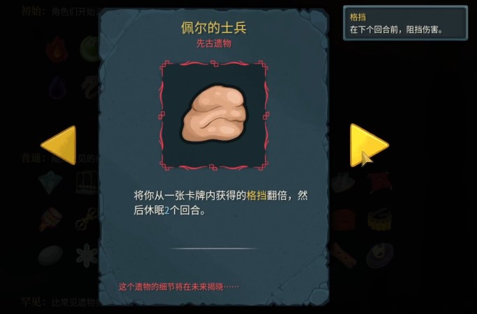 佩尔的士兵就是个能让单次格挡翻倍的狠角色,但缺点是不能连着用。触发一次之后,它得歇两回合,游戏里管这叫”休眠”。说白了就是个冷却机制,提醒你别想太美,得算好时机,在它醒着的时候把最猛的防御牌甩出去,这样才能把价值榨干。