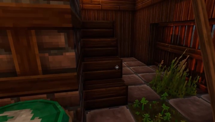 听好了:你先做个普通方块,不管是木头还是石头都行。然后拿在手里,按住R键别松手,会弹出来一个圆形的菜单,里面选楼梯那个形状,再放下去就完事了。