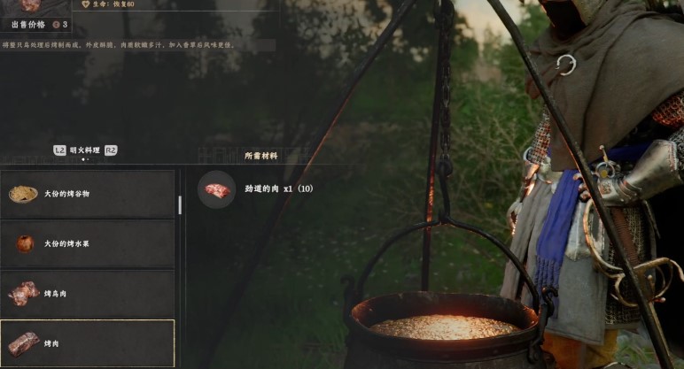 这游戏做饭特别简单,没啥复杂的花样。你只要找到篝火,把手头现成的材料用上就行。