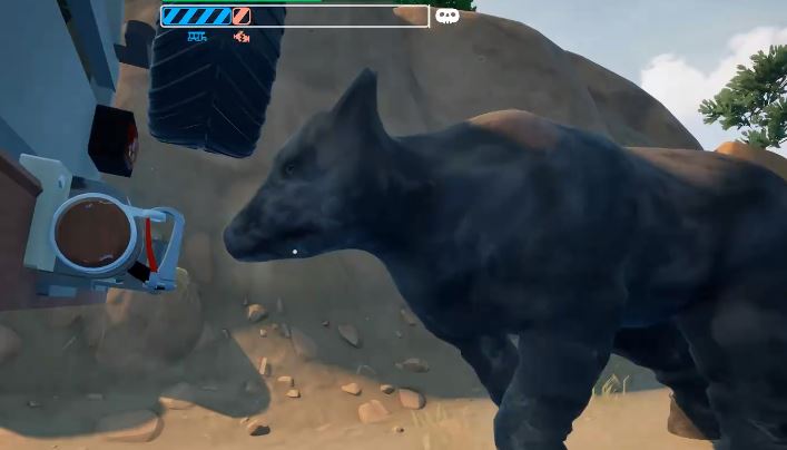 看到黄色罐子之后,靠近按E键就可以捡起来。如果周围暂时安全,建议你把它存放到房车里。这个游戏没有个人背包系统,所以一旦放进去,就变成全队共享的资源啦!这样任何人遇到熊的时候都可以随时取用。