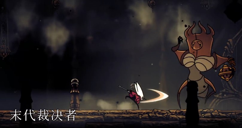 从“钟兽”存档点往右走,一路借助移动平台和摆动的钟往上爬。路上尽量别和小怪纠缠,节省血量。遇到大沟壑时果断冲刺跳过,继续向上攀登。当你到达崩毁阶梯的右上角,穿过最后一道长廊,就会看见一扇巨大门——末代裁决者就在门后,它是通往城堡核心区域的最后守门人。