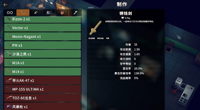 拿到配方后,就可以在工作台合成铜钱剑了。需要的材料是: